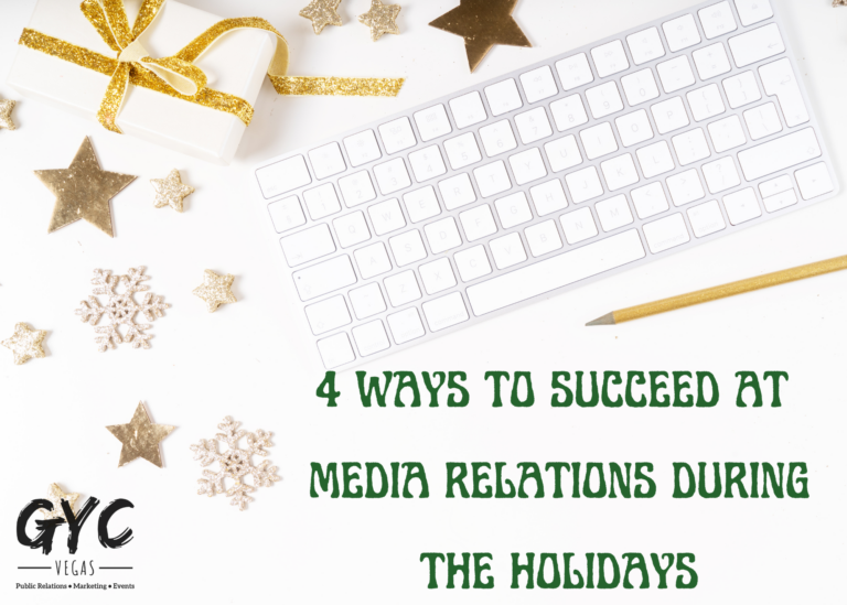 The media relations experts at GYC Vegas ,an integrated marketing communications firm, consistently secure news coverage for our clients during the holidays – and the rest of the year, too. We help businesses grow by creating personalized media strategies that build awareness and grow brands, no matter what day it is. Contact us to schedule a free consultation and learn how we can leverage media relations to showcase your products and services, while differentiating you from competitors and fostering consumer confidence.