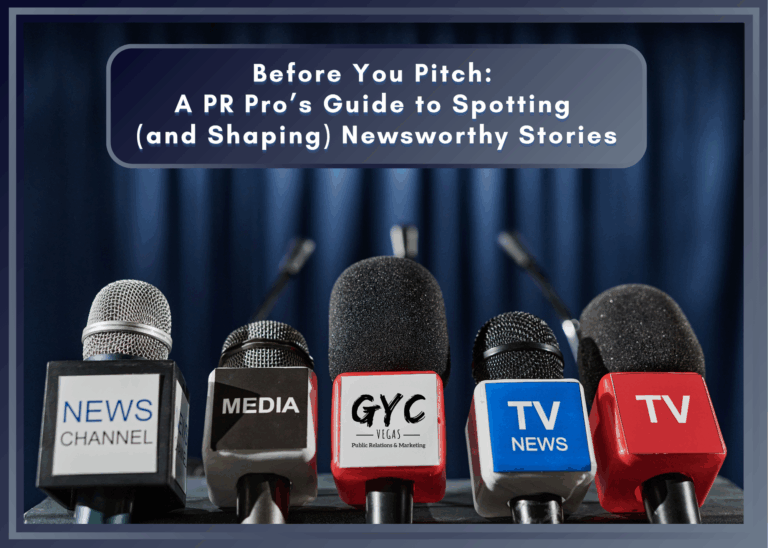At GYC Vegas, we help brands uncover and amplify stories that connect, not just fill inboxes. Whether it’s crafting a media strategy, developing storylines that resonate, or transforming everyday moments into meaningful coverage, we make sure your message gets recognized for all the right reasons. Every company has a story to tell – let’s make yours newsworthy. Fill out our quick questionnaire to get started.