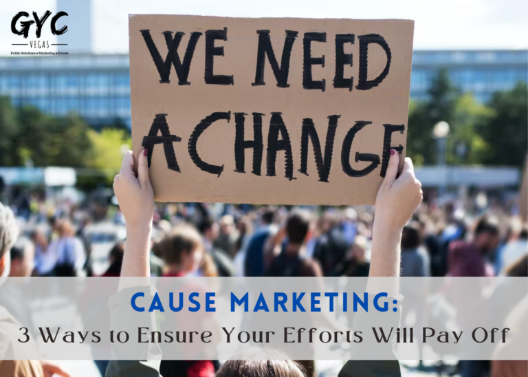 GYC Vegas, a boutique agency that specializes in strategic PR, marketing and branding, can help. Contact us today for a free consultation and learn how our seasoned experts can ensure your cause marketing program delivers optimal bottom-line and feel-good results.