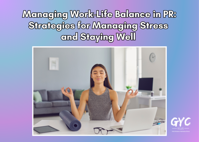Work-life balance in PR is possible—it just takes intention and a little strategy. At GYC Vegas, we encourage our team (and our peers in the industry) to define what balance looks like for them and to speak up when they need support. Because when PR professionals are well, the work thrives too. Need help managing a growing PR workload? Let’s talk strategy. Fill out this questionnaire today tell us more about your PR goals.