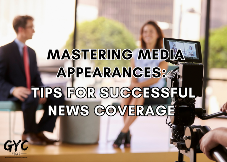 Mastering media appearances is a skill that can greatly enhance your visibility and credibility in today’s media landscape. At GYC Vegas, we embrace these strategies and take every media opportunity as a chance to showcase our client’s expertise, share their story, and make a lasting impact in the public eye. As an award-winning PR agency based in Las Vegas, we have extensive experience working with organizations of all sizes, ranging from startups and small businesses to multinational corporations. Contact us today to discover how our services can assist you in earning news coverage and navigating media appearances with confidence.