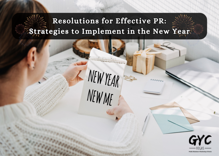 As we navigate the new year, these resolutions serve as a roadmap for PR professionals aiming to achieve effective impact. By embracing digital innovation, fostering connections, and staying attuned to industry shifts, PR professionals can navigate challenges and capitalize on the opportunities that 2024 brings. The professionals at GYC Vegas, an award-winning PR agency, are committed to expanding their expertise and ready to handle any PR project. Schedule a free discovery call to explore how we can assist with your brand’s PR campaign. Here’s to a year filled with successful PR achievements!