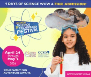 the Clark County School District, the weeklong celebration is designed to inspire families, students, educators, and curious minds of all ages to explore science, technology, engineering, and mathematics through interactive events, educational programs, and behind-the-scenes experiences at organizations across the Las Vegas Valley.