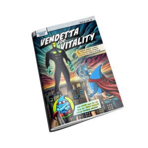 In this issue, Vendetta for Vitality, a city faces its most sinister threat yet when the Vigor Vandal drains citizens of their energy, leaving them helpless in the city streets. The villain thrives on a population addicted to energy drinks, processed sludge, and caffeine fixes, feeding off their depleted vitality. As the citizens collapse in exhaustion, Dewey the Hydration Hero emerges to challenge the villain with the truest source of vitality: fresh, clean water. Through an action-packed showdown, Dewey proves that proper hydration is the foundation of genuine energy and health, ultimately defeating the Vigor Vandal and restoring the city’s strength while reminding readers it’s “never too late to hydrate!”